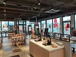 In der Schweiz versuchte man 1981 mit einer Filiale am Stauffacher in Zürich Fuß zu fassen.[20] Nachdem dieser Versuch scheiterte, existierten in einem zweiten Anlauf bis 2004 einige Filialen in der Romandie; seitdem war KFC auf dem Schweizer Markt nicht mehr vertreten. Erst 2017 kehrte KFC in die Schweiz zurück. Im Dezember konnte im Hauptbahnhof von Genf das erste KFC-Restaurant eröffnet werden.[21] Im Juni 2018 wurde die erste Filiale in der Deutschschweiz im Berner Shoppyland Schönbühl eröffnet.[22] Die erste Filiale im Tessin eröffnete im Mai 2018 in Mendrisio.[23] 2024 gibt es in der Schweiz 16 KFC-Filialen.[24]