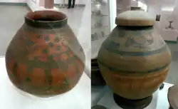 Der Großteil der Keramik besteht aus einem rötlichen Ton mit rotem Überzug. Ein Teil der Keramik ist bemalt. Diese Dekorationen sind in schwarzer Farbe aufgetragen. Die gemalte Dekoration besteht meist aus horizontalen Linien, seltener kommen Muster, die aus pflanzlichen Motiven zusammengesetzt sind, vor. Figürliche Darstellungen beschränken sich auf Tiere, wie Pfauen oder Fische. Menschliche Figuren sind ganz selten. Alle Dekorationen sind stark stilisiert. Neben der Keramik mit einem roten Überzug sind solche mit einem hellen auch häufig anzutreffen. Diese sind jedoch in der Regel unbemalt. Selten ist graue Keramik. Sie ist meist gut poliert, hat aber keinen Überzug und nie Bemalung.