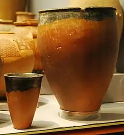 Unter Keramik im Alten Ägypten fasst man alle Gegenstände aus gebranntem Ton aus dem Alten Ägypten zusammen (nach Dorothea Arnold mit Ausnahme figürlicher Gegenstände).[1] Hauptsächlich dienten die Keramikgefäße als Haushaltsware und standen im Zusammenhang mit Lagerung, Zubereitung, Transport und Verzehr von Lebensmitteln und Rohstoffen. Dazu zählen Bier- und Weinkrüge, Wasserbehälter, aber auch die vielfach im Haushalt benutzten Brotbackformen, Feuerbecken, Lampen und Ständer, auf die man rundbodige Gefäße abstellen konnte. Andere Typen dienten rituellen Zwecken. Vielfach wurde Keramik als Grabbeigaben gefunden.