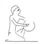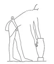 Nach dem Vermischen mit Wasser ist die Tonmasse voll von Luftblasen. Um eine Rissbildung während des Brennprozesses zu verhindern, mussten diese beim sogenannten Walken entfernt werden. Dabei wurden zwei Hälften einer Tonmasse mit relativ großem Kraftaufwand gegeneinander geschlagen. Im Bildschema knetete anschließend ein Arbeiter in gebückter Körperhaltung den Ton mit den Händen, ehe er die gewalkten Ballen direkt dem Töpfer weiterreichte.[15]