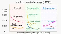Bei Neubauten sorgen neben eventuellen steigenden Investitionskosten insbesondere die ebenfalls zu berücksichtigenden wirtschaftlichen Risiken sowie externe Kosten für große Unsicherheit. Diese sind nur bedingt abschätzbar, beeinflussen die Wirtschaftlichkeit aber erheblich.[115] Zudem ergeben sich aufgrund der hohen Investitionskosten sehr lange Refinanzierungszeiträume von über 30 Jahren nach Inbetriebnahme (zuzüglich Planungs- und Bauzeit), in denen die Betreiber gerade in liberalisierten Märkten mit den dort herrschenden schwer prognostizierbaren Erlösen einem hohen Investitionsrisiko unterliegen.[116] Schon 2009 kam eine Studie der Citibank zu dem Schluss, dass die wirtschaftlichen Risiken für den Bau neuer Kernkraftwerke im Vereinigten Königreich für private Investoren ohne staatliche Unterstützung unannehmbar hoch seien.[117] In einigen Staaten werden deshalb geplante Kraftwerksprojekte aufgeschoben oder aufgehoben,[118][119] während in anderen Staaten wie beispielsweise den USA oder Großbritannien Subventionen gewährt werden, um den Bau von Kraftwerken wirtschaftlich zu machen.[120][121][28]