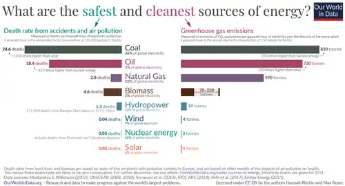 - ↑ Pushker A. Kharecha, James E. Hansen: Prevented Mortality and Greenhouse Gas Emissions from Historical and Projected Nuclear Power. In: Environmental Science & Technology. 47, 2013, S. 4889–4895, doi:10.1021/es3051197.
