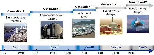 Leistungsreaktoren werden nach Entwicklungsstand und Inbetriebnahme in Generationen gegliedert.[26]