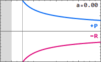 Im extremen Fall von würden sich auf sowohl äquatoriale Photonenkreisbahnen mit als auch gleichzeitig Partikelkreisorbits mit ergeben. Der Grund dafür ist, dass die vom Zentrum ausgehenden Kreise auf der radialen Koordinate denselben Wert einnehmen können, während sie in der euklidischen Einbettung auch einen unendlichen Abstand zueinander haben können, wenn sie wie im Fall von den gleichen lokalen Umfang einnehmen.[38]