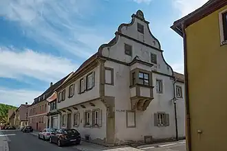 Das zweigeschossige Hauptgebäude hat einen Grundriss von etwa 12,50 × 9 Metern und trägt ein Satteldach. Der Giebel an der Vorderen Raingasse ist als Schweifgiebel in Formen der Renaissance ausgeführt. Die Traufseite an der Kirchstraße hat ein weit vorkragendes, verputztes Fachwerkobergeschoss, die Giebelseite einen Steinerker. Beides war zur Bauzeit eigentlich dem Adel und dem Klerus vorbehalten.