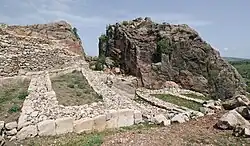 Westlich des hethitischen Gebäudes wurden die Reste eines umfangreichen Komplexes aus der Eisenzeit ergraben. Sie sind wahrscheinlich ab dem 8. Jahrhundert v. Chr. entstanden und in den folgenden Jahrhunderten mehrfach um- und überbaut worden. Vermutlich handelte es sich um offizielle Gebäude, zeitweise auch um eine Befestigung. Zwischen der hethitischen und der eisenzeitlichen Bebauung, direkt anschließend an die Orthostatenmauer, wurde in späterer Zeit, etwa ab dem 4. Jahrhundert v. Chr. ein weiteres monumentales Gebäude errichtet, das in Teilen auch die eisenzeitliche Architektur als Unterbau weiter nutzte. Zum Teil ist die Zugehörigkeit der gefundenen Mauerfragmente nicht eindeutig zu klären. Nach der dort gefundenen mit horizontalen mehrfarbigen Streifenmustern bemalten Keramik, die allgemein als galatisch bezeichnet wird,[12] hat sich für das Bauwerk die Bezeichnung Galatisches Gebäude eingebürgert. Es überbaut wiederum große Teile der früheren Bebauung und hatte wohl ebenfalls eine Funktion als Befestigung. Sowohl dieses Bauwerk als auch die älteren Bauten benutzten hethitische Werksteine als Spolien.[13]