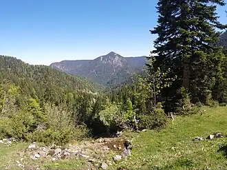 | Quelle | am Sattel zwischen den Kesselköpfen und dem Simetsberg 47° 33′ 34″ N, 11° 14′ 50″ O | |