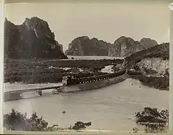 8. Handschriftliche Bildunterschrift: „Voie ferrée reliant le port d'Hongay avec les mines de Nagotna (Tonkin).“