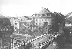 Sie wurde daher durch eine von Friedrich Hohmann entworfene und zwischen 1891 und 1892 errichtete stählerne Bogenbrücke ersetzt, die offiziell weiterhin Ludwigsbrücke hieß, während der Volksmund bei der gewohnten Kettenbrücke blieb.[10] Sie erfüllte ihre Aufgabe, bis sie am 11. April 1945, wenige Tage vor dem Ende des Zweiten Weltkriegs, gesprengt wurde, um den Vormarsch amerikanischer Truppen aufzuhalten. Die Bevölkerung musste sich danach mit einem Fußgängersteg behelfen.