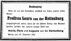 - Peter (Hans Joachim) von der Kettenburg (1926–1993),[18] Haus Matgendorf, Regierungsdirektor a. D.