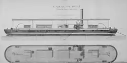 Es sollten 6 Kettenschleppschiffe nach dem System des Erfinders Bouquié aus der Werft Claparède & Cie in Saint Denis nördlich von Paris zum Einsatz kommen. Jedes der Schiffe hatte eine Dampfmaschine mit einer Leistung von 18 Pferdestärken und sollte eine Last von 1000 Tonnen mit einer Geschwindigkeit von drei Kilometern pro Stunde vorwärts ziehen, die auf zwölf 30 Meter lange und 4 Meter breite Lastkähne verteilt war. Der Schlepper hatte eine Länge von 22,2 m und eine Breite von 3,6 m und einen Tiefgang von 0,75 m (voll beladen). Er war so gebaut, dass er vorwärts und rückwärts fahren konnte, wobei die Form der beiden Enden gleich gestaltet war. Im Gegensatz zu den meisten in Europa eingesetzten Kettenschleppschiffen verlief die Kette nicht zentral über die Mitte des Schiffes, sondern die Antriebstrommel war an einer Seite des Schiffes angebracht. Die Kette wurde über Rinnen zur Antriebsrolle geführt. Die Antriebstrommel hatte Vertiefungen für die einzelnen Kettenglieder der Kette. Dadurch umwand die Kette die Antriebstrommel nur auf deren oberen Hälfte, wobei trotzdem eine ausreichende Verhakung erreicht wurde, ohne auf der Trommel zu rutschten.[2][3]