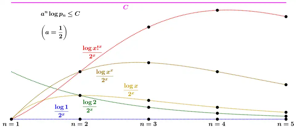 {\displaystyle a^{n}\log p_{n}\leq C}
