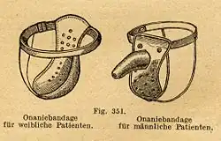 Aus dem 19. Jahrhundert und 20. Jahrhundert sind sogenannte Onaniebandagen bekannt, die zur Anwendung bei Kindern und Jugendlichen bestimmt waren und die zur damaligen Zeit als krankhaft angesehene Masturbation verhindern sollten.
