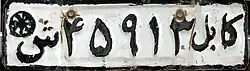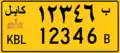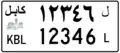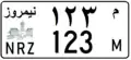 Ältere Kennzeichen wiesen ausschließlich arabische Schriftzeichen auf. Sie begannen mit einem Buchstaben gefolgt von vier Ziffern. Am Ende erschien der ausgeschriebene Name der Provinz.