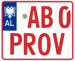 - ↑ Targa të personalizuara. Drejtoria e Përgjithshme e Shërbimeve të Transportit Rrugor, abgerufen am 18. Februar 2024 (albanisch).