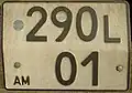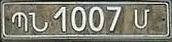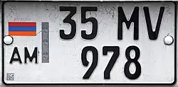 Armenische Kfz-Kennzeichen besitzen schwarze Schrift auf weißem Grund und gleichen somit dem europäischen Standard. Die Schilder zeigen seit August 2014 am linken Rand die Buchstaben AM unter der Flagge Armeniens.[1] Ältere Schilder zeigen statt der Flagge eine Hologramm-Plakette.