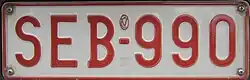 - 25. Juni 2008 – 15. November 2010: drei Ziffern, gefolgt von drei Buchstaben (123-ABC) ausgegeben bis 999-CFQ.[8]