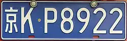 Auf den Kennzeichen steht in als erstes der Name der Provinz in chinesischen Schriftzeichen (京 zum Beispiel für Peking) gefolgt von einem lateinischen Buchstaben, bei dem A für die größte Stadt (Region) der Provinz steht, B für die zweitgrößte usw. und somit eine genauere regionale Zuordnung erlaubt. In Peking beziehen sich die Buchstaben auf die einzelnen Stadtbezirke, wobei A und B für staatliche Fahrzeuge gelten, wie Busse, Taxis, Fahrzeuge der öffentlichen Verwaltung.