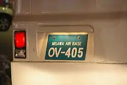 Dienstwagen der US-Streitkräfte in Japan tragen nach dem Status of Forces Agreement (SOFA) ein „Y“ auf einer weißen oder ein „A“ auf einer gelben Tafel, wo sich normalerweise die hiragana Zeichen befinden. Frühere Versionen zeigten die Buchstaben „K“, „M“, „G“, „H“ oder „E“, die anzeigten, dass das Fahrzeug importiert und links gesteuert ist. Seit 1980 wird abgeraten, ein Fahrzeug von den USA nach Japan zu verschiffen, seitdem erwerben viele Angehörige der US-Streitkräfte ihre Autos auf dem Gebrauchtwagenmarkt außerhalb des Stützpunktes oder übernehmen die Fahrzeuge von dem Personal, das abgelöst wurde und Japan verlässt.