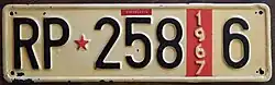Anfang der 1950er Jahre wurde in der Föderativen Volksrepublik Jugoslawien ein neues einheitliches Kennzeichensystem eingeführt. Die Schilder besaßen einen weißen Hintergrund und zeigten zunächst einen roten Stern. Danach gab ein schwarzer Buchstabe die entsprechende Region an, in der das Fahrzeug zugelassen war (S für Slowenien, H Kroatien, C Serbien). Es folgte eine ebenfalls schwarze Ziffernkombination.