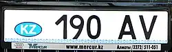 Aktuelles kasachisches KennzeichenZweizeilige VersionKennzeichen für AusländerKennzeichen für ausländische Firmen (zweizeilig)Polizeikennzeichen