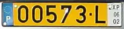 Bei Kennzeichen, welche zwischen 2005 und 2020 ausgegeben wurden, befindet sich ein gelber Streifen am rechten Rand. In diesen wurden das Jahr (oben) und der Monat (unten) der Erstzulassung des Fahrzeugs vermerkt. Diese Sondermarkierung, welche in Europa einzigartig war[1], wurde 1998 eingeführt, um das Datum der Erstzulassung auch bei Importfahrzeugen leicht ablesen zu können[2][3]. Bei Fahrzeugen, deren Erstzulassung in Portugal erfolgte, lässt sich das Datum dieser aufgrund der fortlaufend ausgegebenen Nummern- bzw. Buchstabenfolge anhand öffentlicher Tabellen[4] direkt aus dem Kennzeichen ableiten, was bei Importfahrzeugen nicht ohne weiteres möglich ist. Die Abschaffung des Datumsfelds erfolgte aufgrund einer Angleichung an andere europäische Länder, in welchen das portugiesische Datumsfeld häufig zu Verwechslungen mit einem Ablaufdatum, bspw. bei Export- oder Saisonkennzeichen, führte.[1]