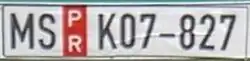 Testkennzeichen zeigen entweder das Wort PREIZKUŠNJA über der Schrift oder die Buchstaben PR innerhalb eines vertikalen roten Balkens.