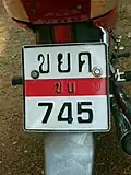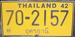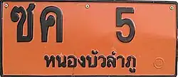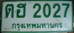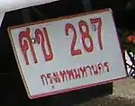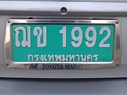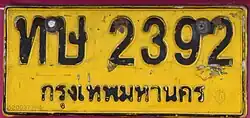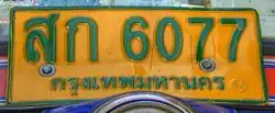 Thailändische Kfz-Kennzeichen entsprechen in der Regel einer Größe von 340 mm × 150 mm. Sie zeigen zwei Buchstaben des thailändischen Alphabets, von denen der erste die Art des Fahrzeuges angibt. Es folgen maximal vier Ziffern. Am unteren Rand erscheint der Name der Provinz, in der das Fahrzeug zugelassen wurde, ebenfalls in thailändischer Schrift. Da in Bangkok bereits alle möglichen Kombinationen nach diesem Schema erschöpft sind, werden seit 2012 Schilder mit einer weiteren Ziffer an erster Stelle ausgegeben. Je nach Verwendungszweck und Fahrzeugart werden verschiedene Farbkombinationen genutzt.