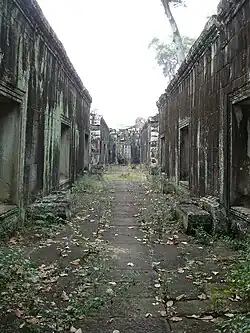 Im Osten schließt der Innenhof mit einem Gopuram ab. Dieser öffnet sich zu einem weiteren Innenhof, der von einer Lateritmauer gebildet wird. In ihm liegen zwei sogenannte Bibliotheken mit je einer Türöffnung nach Osten.[8] Die Funktion dieser für die Architektur der Khmer typischen Bauten, welche am rechteckigen Grundriss, dicken Mauern, einem einzigen Portal und schießschartenartigen Öffnungen zur Belichtung zu erkennen sind, ist bisher unbekannt.[11] In der Mitte dieses zweiten Innenhofs liegt ein kleines Heiligtum in Form eines griechischen Kreuzes. Es steht auf einer umfangreich verzierten Plattform, hat drei Scheintüren, axiale Treppen und weist Medaillons mit Tänzern auf.[8]