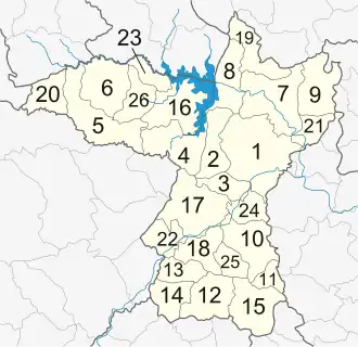 † Die fehlenden Nummern von 26 bis 28 sind reserviert für andere in Planung befindliche Amphoe: Phu Kham Noi (ภูคำน้อย), Nong Kae (หนองแก) und Non Hin (โนนหัน).