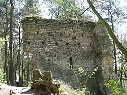 Die Ruine steht am westlichen Rand des Hohlener Teichs auf einem Felsvorsprung, der auf der Westseite durch einen Wassergraben getrennt und durch einen Wall geschützt war. Die Ruine umfasst die Ostwand des Palas, in einer Höhe von etwa 7 m, während die kürzere Südwand nur noch in etwa 3 m Höhe erhalten ist.