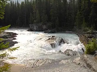 Der Fluss hat drei Wasserfälle entlang seiner Fließstrecke. Der erste ist der Kicking Horse Cascade, ein langer Talus-Wasserfall, der an der ersten Highway-Querung unterhalb des Wapta Lake liegt. Der zweite Wasserfall ist der Natural Bridge Falls bei Field. Der letzte und größte Wasserfall ist der ca. 30 m (100 ft) hohe und ca. 150 m (500 ft) breite Wapta Falls, einer der größten Wasserfälle in Kanada gemessen an Volumen und Breite.