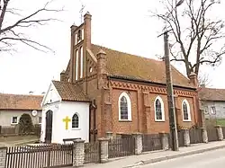 Die Einwohner Köslienens evangelischer Konfession besuchten zunächst die Gottesdienste in Allenstein (polnisch Olsztyn), die im nördlichen Flügel der Burg gefeiert wurden[10]. Ab Oktober 1877 stand die neu errichtete Christus-Erlöser-Kirche in Allenstein zur Verfügung.