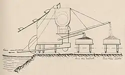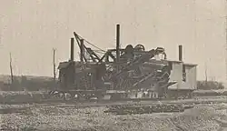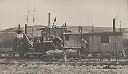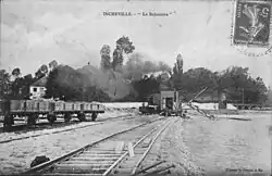 Später wurde die Kiesgrube südwestlich der Zuckerfabrik beim heutigen Étang d’Incheville erschlossen. Sie wurde mit drei Eimerkettenbaggern ausgebeutet und immer weiter vergrößert.[8][18][19][20][21] Das überregional tätige Entreprise Drouard Frères errichtete am Bahnhof von Incheville Werkstätten für die Wartung der beim Kiesabbau verwendeten Eimerkettenbagger, Dampfmaschinen und Schienenfahrzeuge.