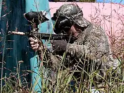 In der politischen Diskussion wurde der Begriff Killerspiel zuerst vorwiegend für reale Spiele wie Paintball und Laserdrome verwendet,[1] wobei der Begriff Killerspielautomat bereits zu Beginn der 1980er-Jahre in der Debatte um Videospielautomaten wie Space Invaders geprägt wurde.[2] Populär gemacht wurde der Begriff Killerspiel 1999 durch den damaligen bayerischen Innenminister Günther Beckstein.[3] Nach dem Amoklauf von Erfurt im Jahre 2002 wurden damit auch gewalthaltige Computerspiele bezeichnet, beispielsweise Ego-Shooter wie Counter-Strike oder Third-Person-Shooter wie Grand Theft Auto. In einem Gesetzesantrag, welcher in Reaktion auf den Erfurter Amoklauf gestellt wurde, geht es noch um ein „Verbot von Killerspielen wie Gotcha, Paintball und Laserdrome“.[1] Im Koalitionsvertrag der großen Koalition aus dem Jahr 2005 wurde die Forderung nach einem Verbot von Killerspielen eingebracht, ohne der Bezeichnung eine Bedeutung zukommen zu lassen. Seit 2006 ist konkret von Computerspielen die Rede.[4][5]