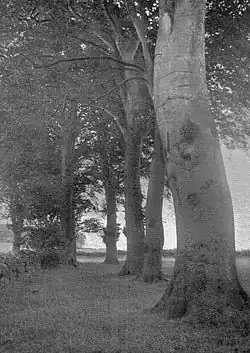 1912 konnte man im Feld anschließend an die Hauptstraße noch Spuren einer Allee entdecken, die am Stadtrand begann und weitschweifig zur alten Hausfront führte. Cuthbertson notierte, dass einige dieser Buchen noch bis 1945 dort waren.[35] Der Eingang von der Mühlengasse über eine Brücke über Carmel Water soll gebaut worden sein, als die Hausfront geändert wurde.[36]