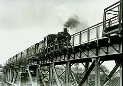 Viadukt mit Dampfzug, bestehend aus Zweiachsern