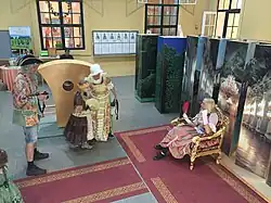 In einer interaktiven Erlebniswelt erfahren die Kinder, wie man sich am barocken Kaiserhof des 18. Jahrhunderts kleidete, wie ein kaiserlicher Tisch gedeckt wurde und wie es um die Hygiene der Kaiserfamilie stand. Zum Highlight des Kindermuseums gehört das Verkleiden als Adelige und Diener. Mit einer Reihe von Perücken und Kleidern in unterschiedlichen Größen und Farben können Eltern und Kinder in die Rolle der Kaiserfamilie schlüpfen. Im Bergl-Zimmer, das im exotischen Stil ausgemalt ist, können sich die Kinder mit der Körperpflege und den medizinischen Möglichkeiten des 18. Jahrhunderts vertraut machen. An einem Drehrad (= „Dialograd“) gleich zu Beginn des Museums wird der Unterschied zwischen reichen Kaiserkindern und Kindern aus dem Volk vermittelt. Außerdem sind einige historische Spielsachen und beispielhafte Spiele ausgestellt, die Einblicke in die Sitten der adeligen Familien geben sollen.[3]