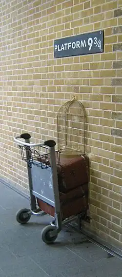 In den Harry-Potter-Büchern ist King's Cross der Bahnhof, an dem die Protagonistin in den Zug nach Hogwarts einsteigt. Die Autorin Joanne K. Rowling gab jedoch später zu, ihn mit dem nahegelegenen Bahnhof Euston verwechselt zu haben[25]. Der Bahnhof hat ein Schild für das fiktive „Gleis 9 3/4“ aufgestellt, wie in den Harry-Potter-Büchern beschrieben, und ein Teil eines Gepäckwagens wurde zur Hälfte in die Wand eingelassen. In den Filmadaptionen wurden die Gleise 4 und 5 verwendet, wobei die Außenaufnahmen im nahegelegenen Bahnhof St. Pancras und dem Hotel erfolgten[26].