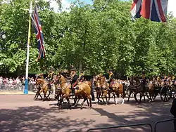 Seit 1998 nimmt der King's Troop, Royal Horse Artillery alljährlich im Juni an Trooping the Colour teil. Da der Trupp in der Rangfolge der Einheiten der britischen Armee an der Spitze rangiert, sofern die Kanonen dabei sind (British Army Order of Precedence), reitet sie stets vor dem Household Cavalry Mounted Regiment; die erste Kanone repräsentiert dabei die Flagge der Einheit. Nach der Zeremonie feuert die Einheit aus dem Green Park einen Royal Salute mit 41 Schuss.