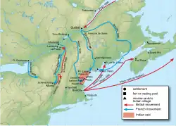 King William’s War begann, als sich König Wilhelm III. der Liga von Augsburg gegen Frankreich anschloss. Frankreich und seine indianischen Verbündeten (Abenaki) griffen britische Grenzsiedlungen an. Die Briten konnten Québec nicht erobern. Der Frieden von Rijswijk beendete 1697 den Krieg, aber der Frieden hielt nicht lange. Schon kurz darauf waren die Kolonien in den nächsten der Franzosen- und Indianerkriege verwickelt, Queen Anne’s War (1702–1713).