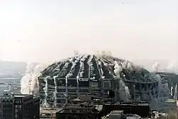 Einen Tag vor dem 24. Geburtstag des Stadions am 26. März 2000 fand die Sprengung des Kingdome statt. Am frühen Sonntagmorgen versammelten sich tausende Schaulustige, um sich das Ereignis anzusehen. Um 8:30 Uhr wurden die Sprengladungen gezündet, und wie geplant sackte das entkernte Gebäude in sich zusammen. Es hinterließ nach rund 17 Sekunden nur eine große Staubwolke.[9] Es war zu der Zeit das größte Gebäude (nach Rauminhalt), das durch eine Sprengung abgerissen wurde.[10] Nach dem Abtransport des Bauschutts startete im April der Bau des Seahawks Stadium. 97 % des Kingdome-Betons wurden beim Neubau recycelt, was 35 % des dort verwendeten Betons ausmachte.