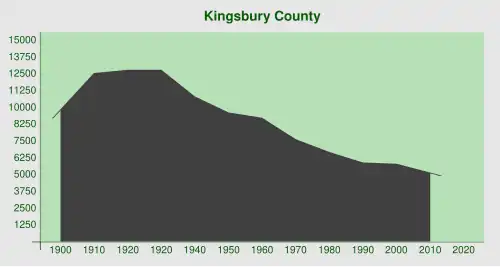 - ↑ Explore Census Data Total Population in Kingsbury County, South Dakota. Abgerufen am 17. März 2023.