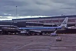 Währenddessen entschloss man sich zum Bau eines Gebäudes für den internationalen Verkehr. Als Ort wurde die Fläche gegenüber den bestehenden Fluggastanlagen auf der anderen Seite der Nord-Süd-Landebahn gewählt. Nachdem man im Jahr 1965 mit dem Bau angefangen hatte,[27] konnte das Gebäude im Mai 1970 feierlich eröffnet werden. Die neuen Anlagen wurden für den zu dieser Zeit noch recht neuen Jumbojet ausgelegt.[30][31] Das Gebäude steht noch heute, wenn auch stark modernisiert und ausgebaut. An der feierlichen Eröffnungszeremonie, die am 3. Mai 1970 stattfand, nahm Queen Elisabeth II. teil.[32]