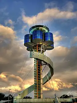 Im Jahr 1996 wurde schließlich der aktuelle Kontrollturm eröffnet. Der moderne Bau, der seinen Vorgänger in der Höhe weit übertrifft, bietet mit seiner weit um den Turm geschlungenen Wendeltreppe ein sehr markantes Bild. Er befindet sich auf dem neuesten Stand der Technik.[70]