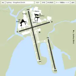 Der Kingsford Smith International Airport oder Sydney Airport (IATA-Code: SYD, ICAO-Code: YSSY) ist der Flughafen der australischen Metropole Sydney. Er liegt rund neun Kilometer südlich der Stadtmitte und hat drei Terminals, wovon zwei für den nationalen und eins für den internationalen Flugverkehr genutzt werden. Der größte Airport des Landes ist nach dem Luftfahrtpionier Charles Kingsford Smith benannt.[6]