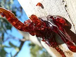 Australisches Kino von Corymbia-, Angophora- und Eucalyptus-Arten wird auch „Red Gum“ oder „Botany Bay Kino“ genannt.[4][5] Allerdings wird rotes Akaroidharz technisch auch als „Red Gum“ bzw. „Gum acroides“ bezeichnet (CAS Nr. 9000-20-8). Es ist darum nicht zu verwechseln.[6]