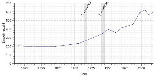 Die Entwicklung der Einwohnerzahl von Kirburg, die Werte von 1871 bis 1987 beruhen auf Volkszählungen:[3]