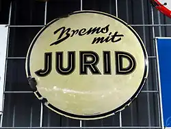 1945 ging Kurt Kirchbach nach einem kurzen Aufenthalt in Duderstadt nach Düsseldorf-Benrath, wo schon im Spätsommer mit fünf Arbeitern unter dem Namen Juridwerk Kurt Kirchbach der Betrieb neu begann.[5] 1949 zog die Fabrik nach Düsseldorf-Grafenberg.[34] Das 1921 beim Reichspatentamt eingetragene Warenzeichen „Jurid“ wurde 1952 als Wort-Bild-Marke im Internationalen Markenregister als IR163201 registriert. Sie wurde mehrfach umgeschrieben. 2000 übernahm die Honeywell International Inc. die Marke Jurid. 2023 war die Federal-Mogul Bremsbelag GmbH Inhaber der Marke. Das Unternehmen wurde 2018 an Tenneco verkauft und produziert nach wie vor in Glinde Bremsbeläge.[35]