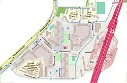 Die Siedlung besteht aus vier Teilen. Zwei der Teile gehören zu einer 14-geschossigen Hochhaus-Scheibe, die in nord-südlicher Richtung verläuft und durch den Karl-Arnold-Ring geteilt wird. Südwestlich und nordöstlich davon befinden sich sechs- bis achtgeschossige Bauten, die um den jeweiligen Blockrand gelegt sind. Mehr als die Hälfte aller Wohnungen gehören der SAGA, der Rest weiteren fünf Wohnungsbauunternehmen.[1]